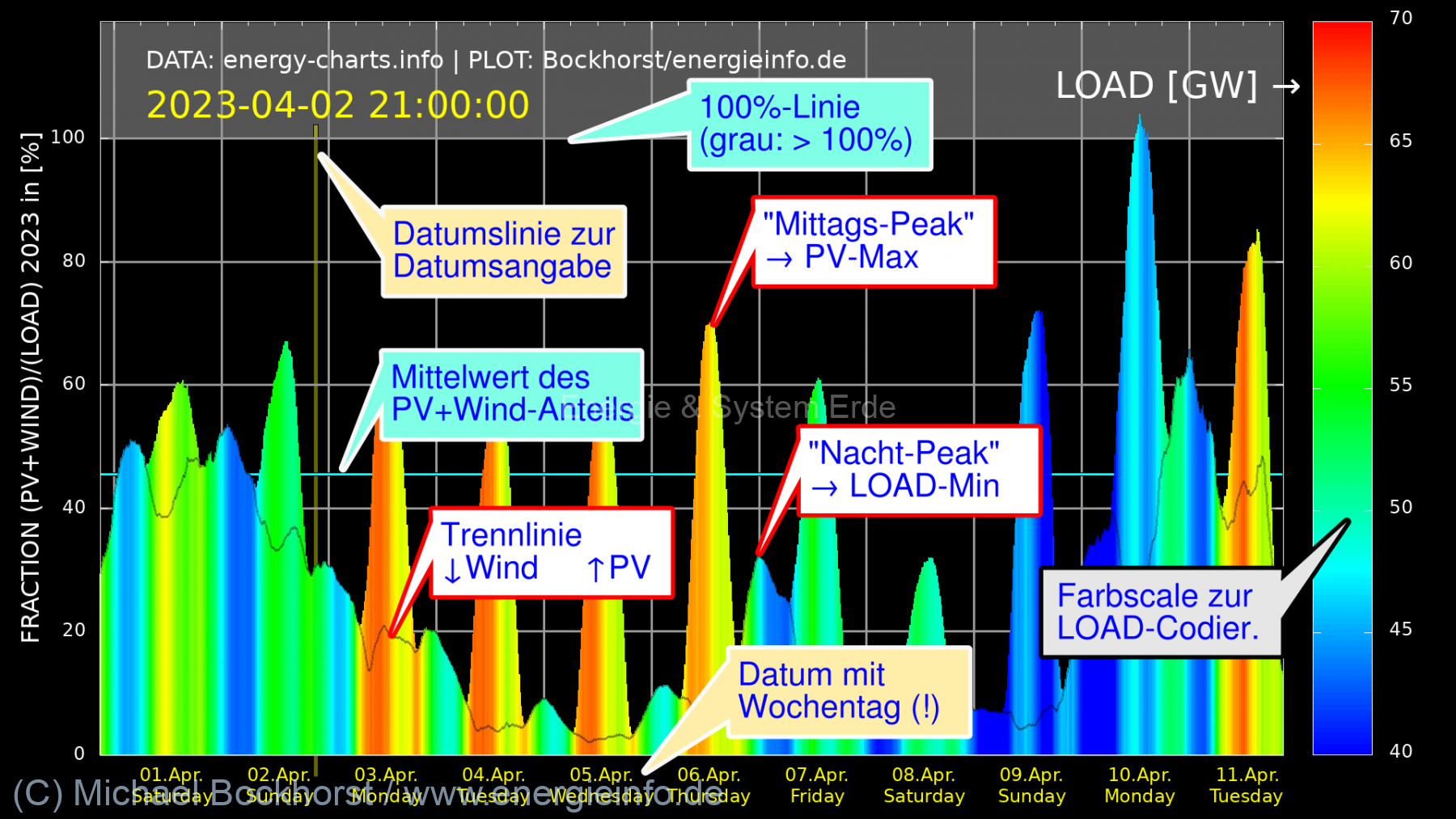 Ist solch eine punktuelle Betrachtung überhaupt zulässig? Ich denke schon, denn Bedarf und Produktion bei Strom müssen jederzeit sekündlich exakt angepasst sein. Ist halt so, rein physikalisch.